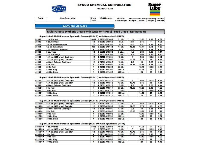 Super Lube synthetic lubricants from Synco Chemical Corporation are designed for an endless range of applications and lubricate longer and better. As technology evolves, lubricants are exposed to higher operating speeds and wider temperature ranges. This increases the need for lubricants that can provide long-lasting protection against friction, wear, rust and corrosion. Super Lube synthetic lubricants keep pace with these technological advances and succeed where conventional products fail. The result is a full range that increases productivity, reduces downtime and extends the life of your machines, while providing cost-effective and trouble-free maintenance. With a full range, Super Lube products are the solution for a wide spectrum of lubrication applications.